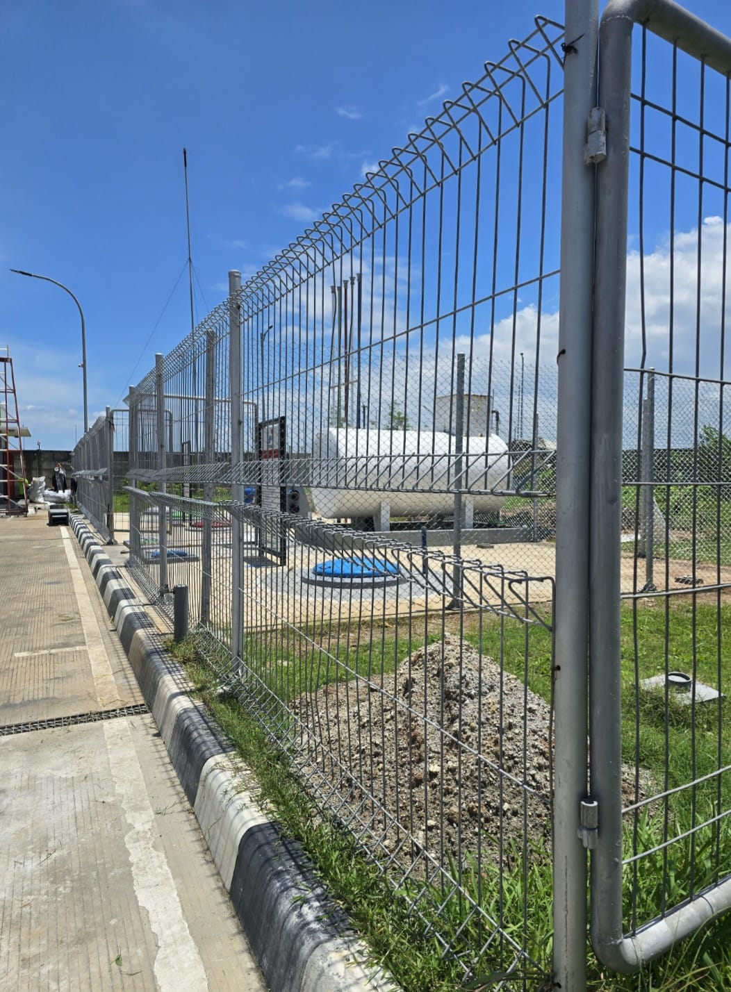 Pagar mesh tipe T.150 dengan tinggi 150cm. Ideal untuk pagar pabrik, gudang, atau area yang membutuhkan privasi lebih.
